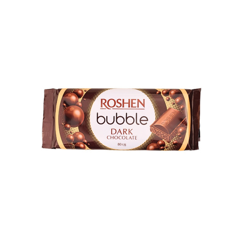 Гіркий шоколад Roshen з бульбашками — витончений десерт для справжніх гурманів. Завдяки повітряним бульбашкам структура шоколаду стає легкою, а смак — більш насиченим. Поєднання какао та ніжної гірчинки створює збалансований аромат, який залишає тривалий післясмак.