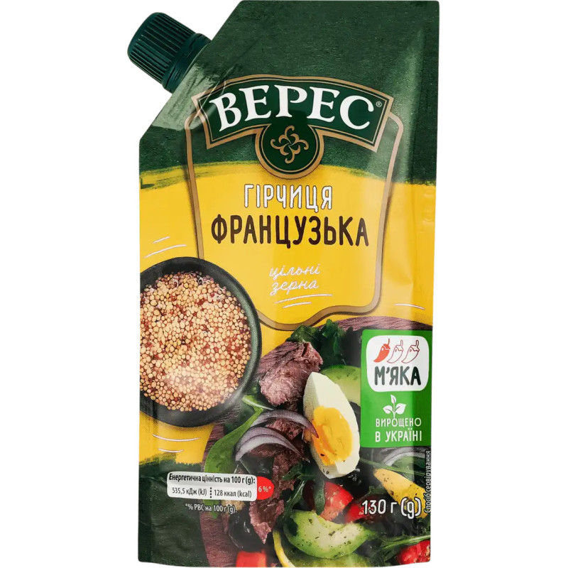 Французька гірчиця із цілими зернами — делікатна пікантність і текстура, що «лопається». Ідеальна до м’яса, ковбас, сендвічів, салатних заправок і соусів до риби.