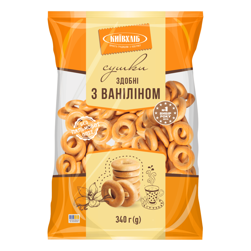 Сушка «Київхліб Ванільна» — легкі та хрусткі кільця з приємним ароматом ванілі. Вони стануть чудовим доповненням до чаю або кави, а також підходять як перекус для дітей. Виготовлені за традиційним рецептом із натуральних інгредієнтів.